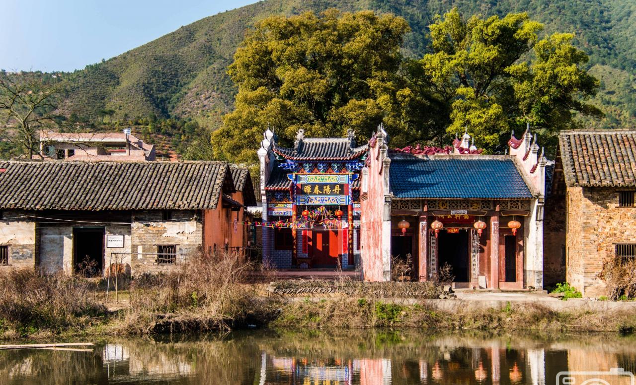 村里的古祠堂均建于明清时期,以坐北朝南方向居多,砖木结构。诸多各房系祖祠于其后呈放射状分布。从外观看,都是长方形平面,青砖黛瓦,重重叠叠的马头墙掩映着双坡屋顶。祠堂内结构多为二进三开间,左右对称,高大宽敞。室内主要用木雕进行装饰,门楣、藻井、天井、窗户都经过工匠的精雕细琢。