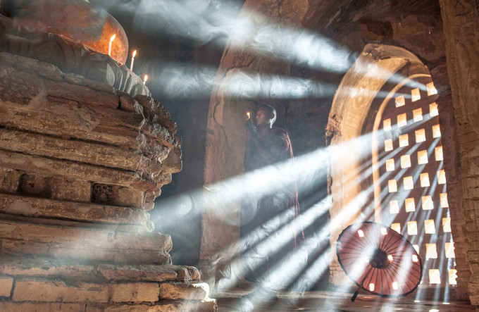 仰光看起来像一个巨大的公园,到处是植物,花草和佛塔。裸露左肩、穿着红色袈裟的僧人赤脚在街上飘着。仰光有殖民地时代留下的英国建筑的暗红色屋顶,印度教寺庙镶着各种神灵雕像覆盖着青苔的顶、现代文明发明的四方盒子的顶、佛塔、教堂、鸽子在天空嬉戏。