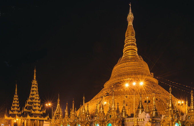 高高在上的大金塔是仰光甚至缅甸的地标,大金塔通体黄金,所用的黄金据说达到7吨,塔尖由近7000颗钻石和宝石镶嵌而成,位于塔尖最高的是一颗76克拉的钻石。