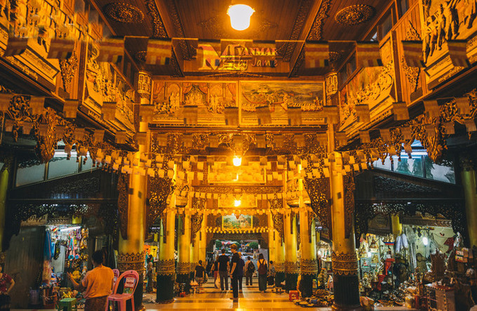 购物绝对是缅甸的一大亮点,建造于1926年的昂山市场共有超过2000家店铺,除了能买到缅甸各地的手工艺品之外,这里也设有不少宝石翡翠商铺和货币兑换商。市场的气氛十分家常,也能感受到浓厚的当地生活气息。
