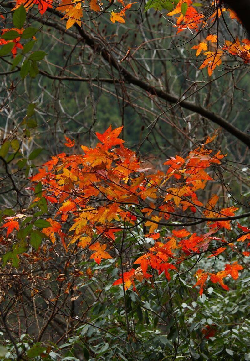 更值得一提的是,深秋时节的天堂寨,一步一景,“景景”呼应。