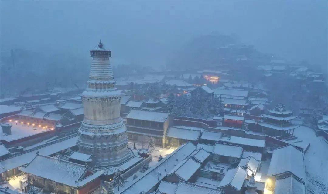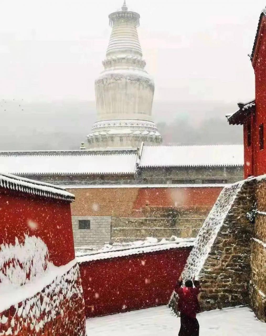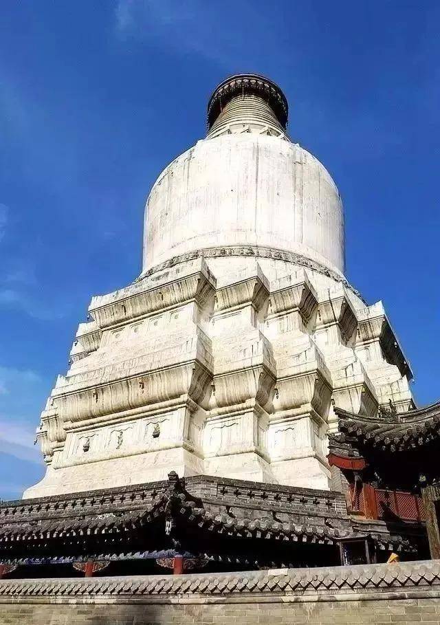 在五台山中,有大大小小近百座寺庙,而在寺庙间有一座塔特别显眼,蔚为壮观,这就是被人们所称的四大佛教圣地之首五台山的标志——大白塔。
