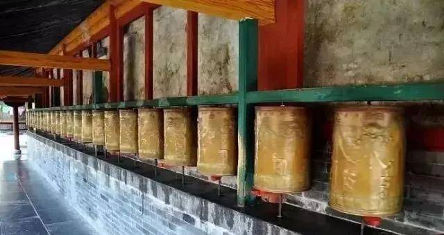 在五台山喇嘛佛教寺庙内、还有五台山标志大白塔四周随处都有,转经筒又称“嘛呢”经筒、转经桶等,人们除了口诵六字真言外,还制作“嘛呢”经筒,把“六字大明咒”经卷装于经筒内,用手摇转,每转动一次就相当于念颂经文一次。