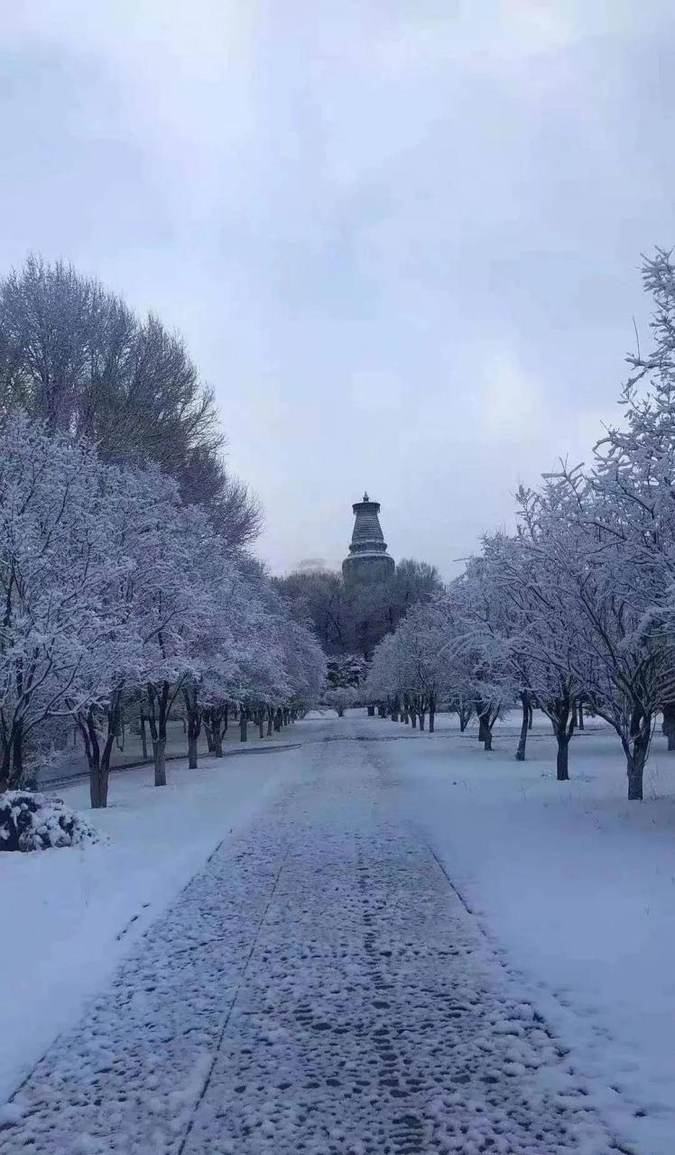 每逢西北风吹,叮铃、叮铃作响;偶有东南风刮,铃铛、铃铛而鸣。风吹劲向不同,铃铎响声各异,饶有一番古刹风趣。大白塔通身高七十五点三米,周身青砖砌造。外抹石灰,全身雪亮。比例匀称,朴实无华。轮廓雄浑,气势磅礴。厥高入云,云飞塔移。昼则映日,夜若白光。它是清凉山的第一胜景,也是五台山的一大标志,更是五台山的象征。