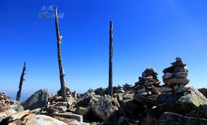 (草链岭主峰 第四纪冰川遗迹 玛尼堆和独立的木杆 充满了神秘的宗教气息)