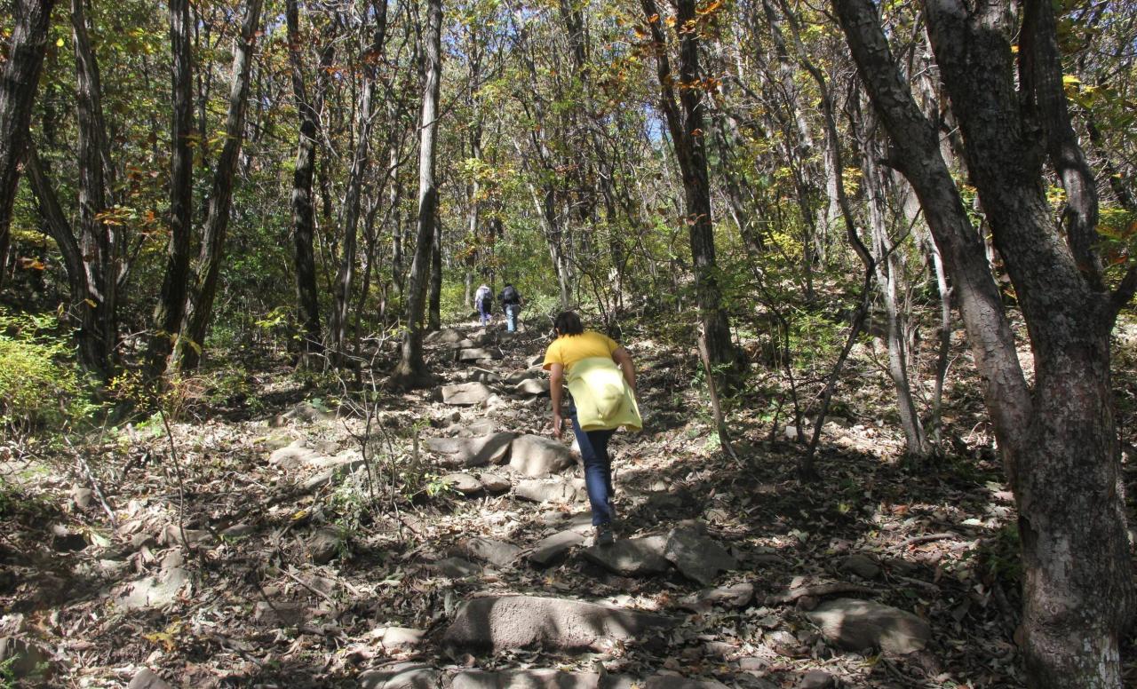 庚子年秋,农历九月初五,九九重阳节前夕,余一行数十余人,车行一百余公里,方抵商洛市洛南县洛源镇,准备徒步登高草链岭。车到山脚下稍息片刻,留影山门牌坊间,谈笑山水,就开始攀巍巍东秦岭之巅--草链岭,往返全程约30华里。