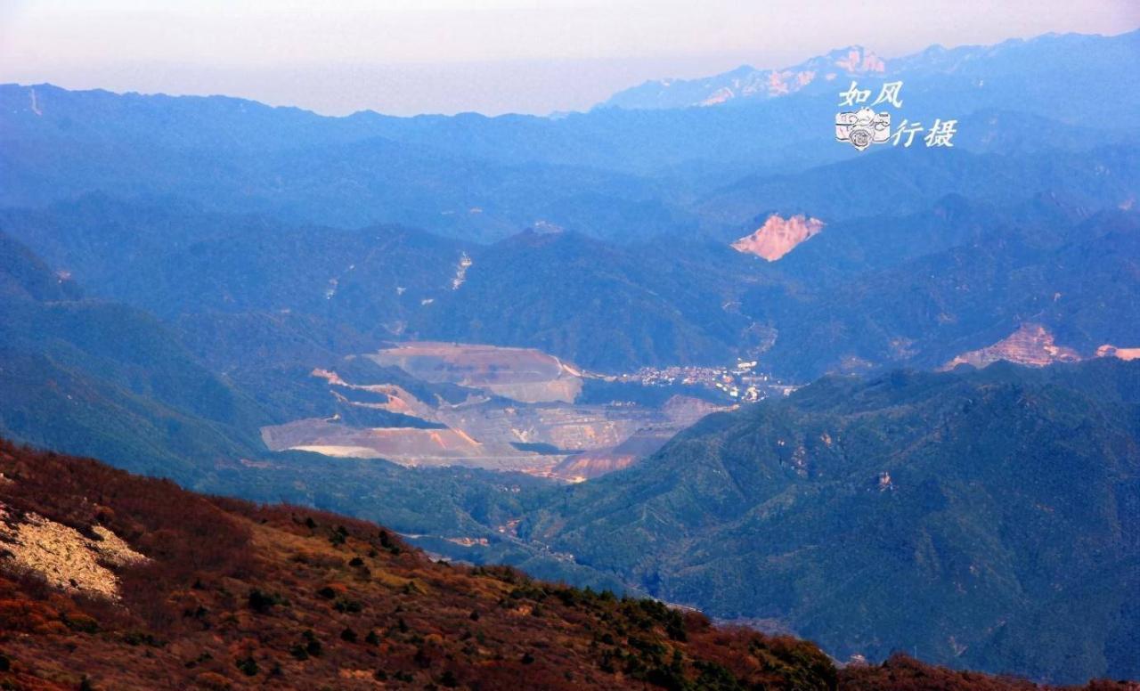 (顶峰上望得我国最大的钼矿“金堆城”在渭南华阴县境内的秦岭腹地里 巨大的露天矿坑)