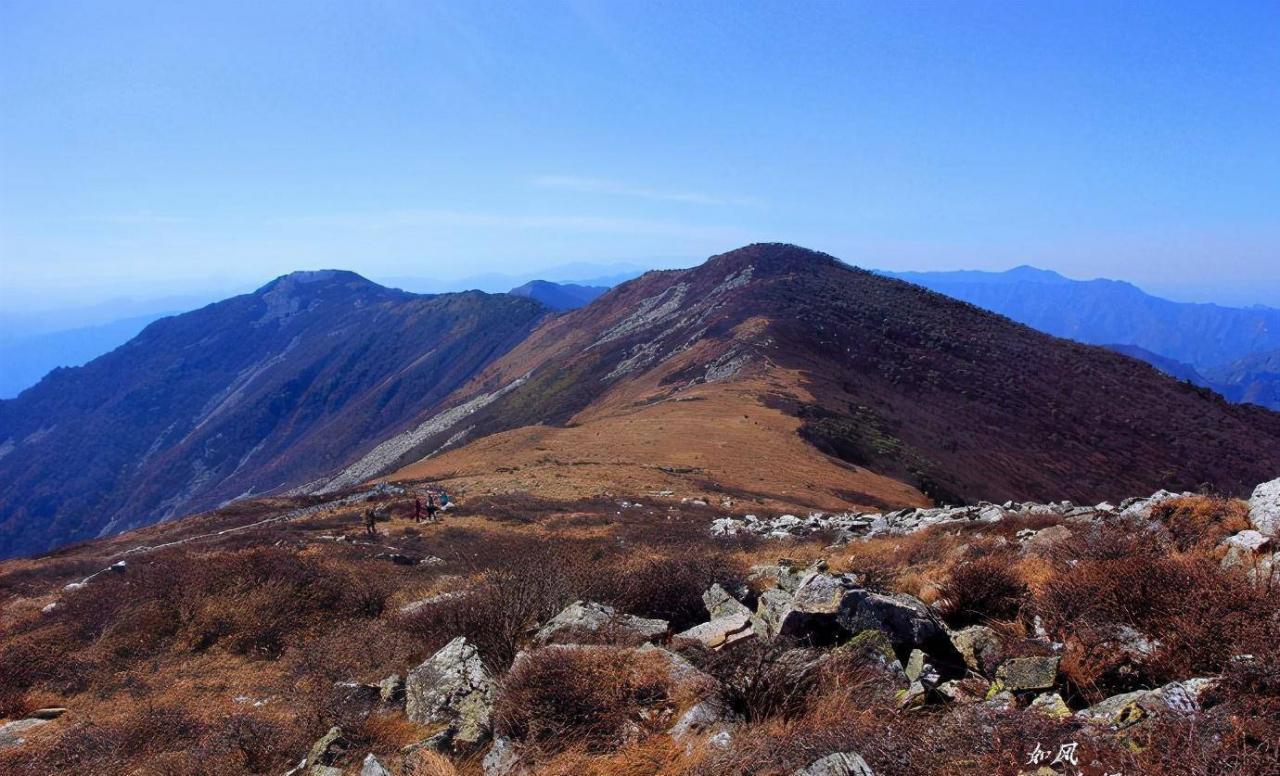 (主峰上向东眺望主梁蜿蜒东去 远处 群峰逶迤)