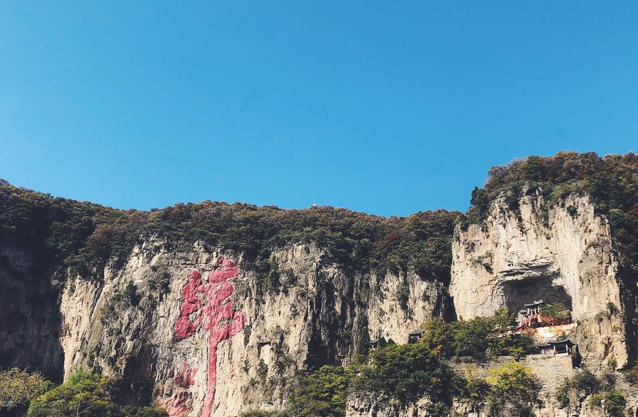 并且,在天桂山里面,除了刚才提到的那些红叶美景,以及优美的自然生态景观以外,其实还散落和分布着一些历史人文景观。比如,大家现在看到的这个山岩之上用红色大字刻写的“归”字,就是它的独特的历史人文景观之一。而它还是世界最大的汉字,已载入吉尼斯世界纪录,成为了天桂山1997年以来的新的景观。