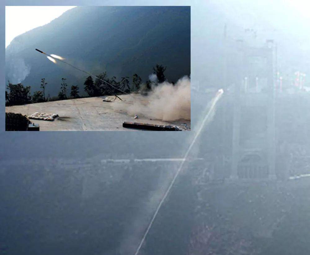 大桥的项目负责人被这个难题所难住,后来灵光一现:可以借助武器的发射系统将先导索射向对岸峡谷。这个想法得到了肯定,但是却需要非常精准、细致入微的技术。终于在多名权威专家和技术人员的努力下,只用了不到3秒的时间,就用火箭弹将先导索发射落入预定目标。