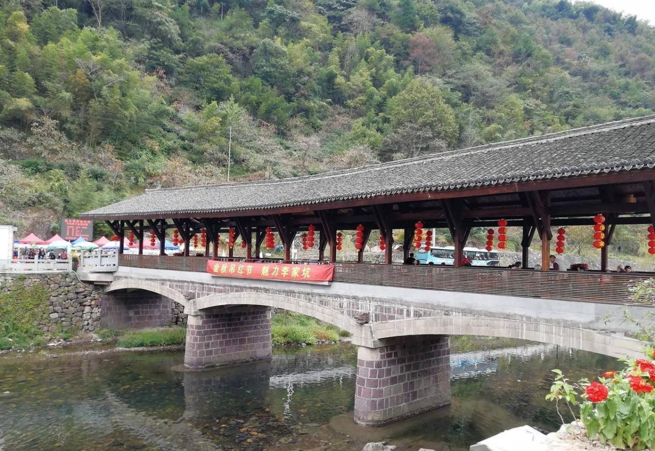 今天想给大家说说最后一站-李家坑村,这是一座国家历史文化名村、中国美丽休闲乡村、宁波长寿之乡,以漂流、吊红柿、花园、廊桥、农家乐、秋色闻名于世,是四明山深处的世外桃源,隐世又美成诗。