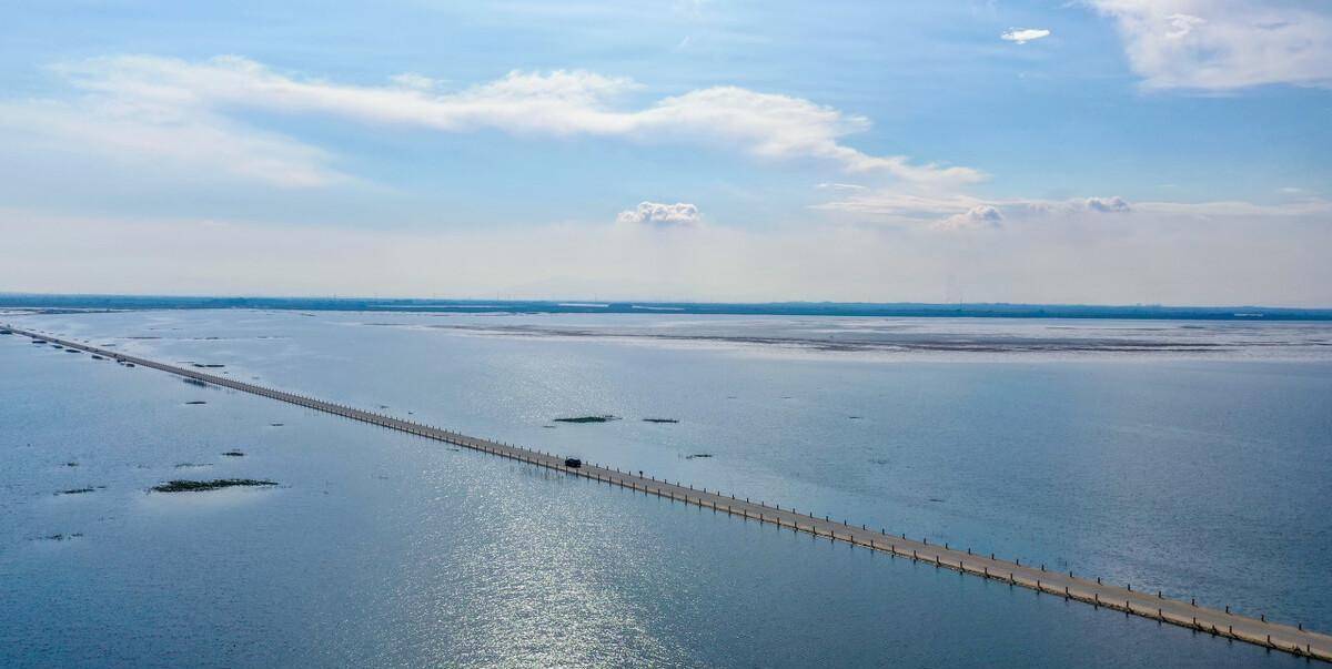 江西永吴公路,最美水上公路,如入《千与千寻》场景,鄱阳湖下雨水位上涨,看似平凡的公路就像是对上了暗号、触发了机关,一条美轮美奂的水中公路换了装,呈现在眼前。需要注意的是,该水域属血吸虫高发区,公路再美也尽量不要涉险无保护地下水、踩水嬉戏,防止感染。