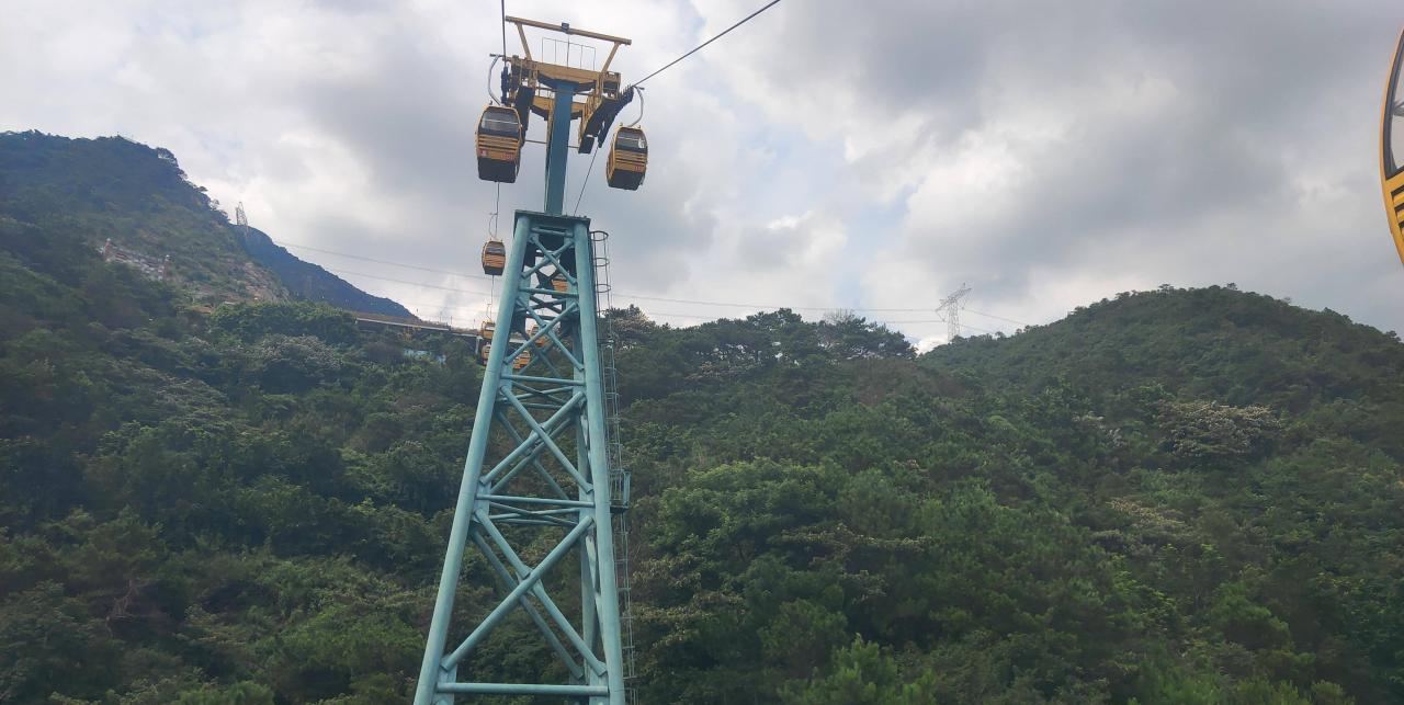 本来在购买门票的时候可以选择乘坐观光巴士直达“网球拍”最近的地方,但我却选择了一条不平凡的路线,就是乘坐陈旧的登山缆车上山,但是我奉劝大家千万别坐这些缆车,因为感觉非常不舒服,而且有点危险。