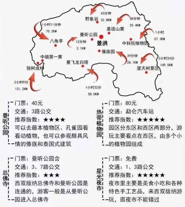 其实版纳可玩景点不少,但相对较分散又同属热带雨林地带,相似性较高,所以这里匠匠建议大家根据自己时间选择几个代表性的景点体验就好