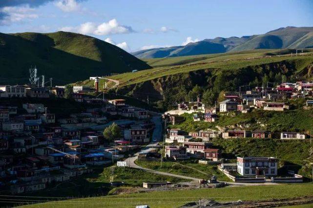 这里有雪山、草甸、牛羊成群,它依山坡而建的藏式房屋,层层错落很有看点,同时它没有色达密密麻麻红房子,但比起色达这里的风景更丰富,它就是塔公草原深处的一个小村落“各日马村”