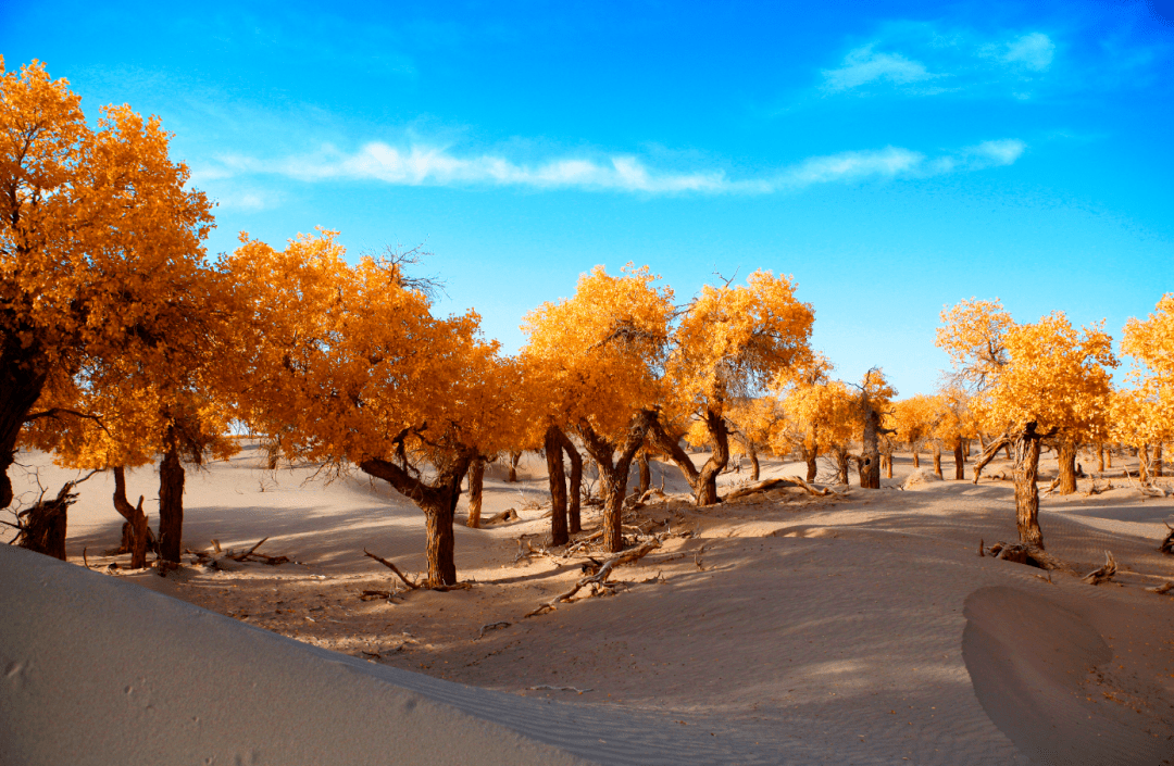 多少人千里迢迢来到额济纳,只为看一眼这美妙纯正的金黄色。一年中只美21天,最佳观赏时间是9月20-10月15日期间,错过就要再等一年。