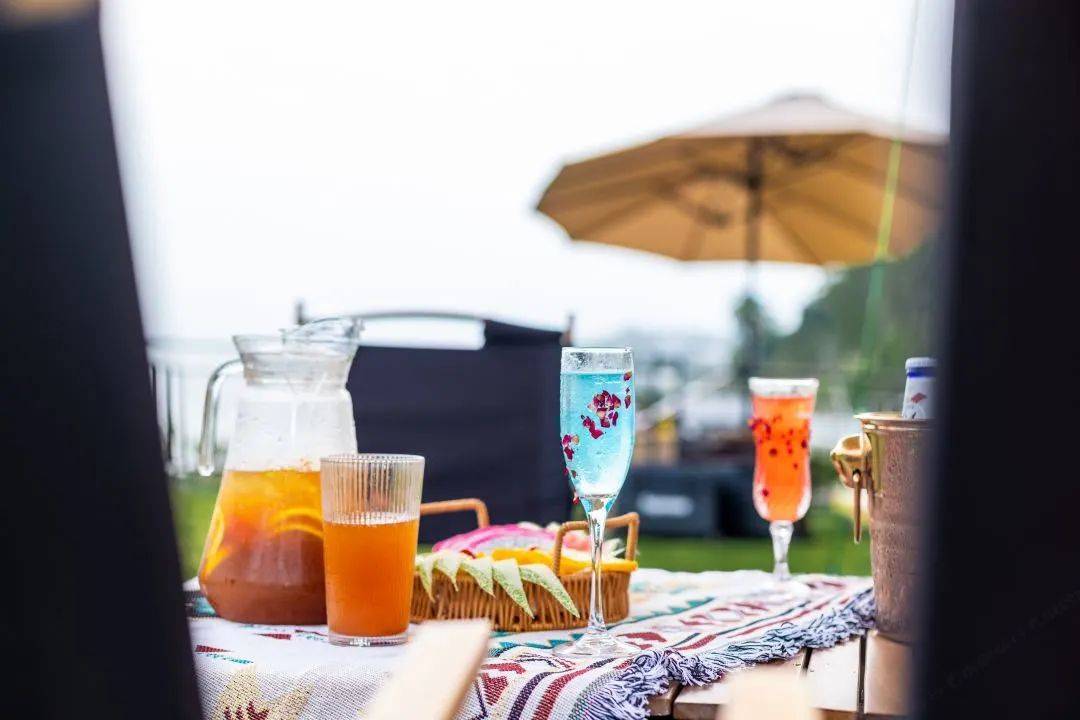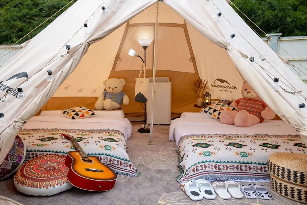 这里有不过夜露营和过夜露营可选,当然不过夜会便宜些 ,含天幕、桌椅、下午茶、露营灯、营地场地使用等,过夜露营配过夜帐篷、舒适床品、空调、充电设备、露营灯、洗漱用品等设施,还有早餐和下午茶