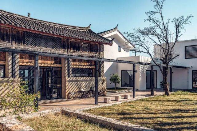 五子山房由三个院子组成,推开窗门抬头就能看到壮丽的玉龙雪山山景,民宿由闲置的原始院落改造,在保留传统纳西房屋结构的基础上,借大自然的灵感,配合古朴雅致设计,让整个院落都散发出生活本来的样子,幽静灵动,淡淡的色彩,在白云和雪山的映照下,宛如一个梦境。