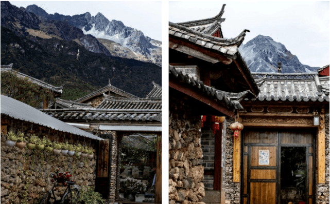 玉湖村背依玉龙雪山,前临玉湖,一进村子,就能发现满眼都是石头,当地的纳西人家都用石头建房,配以木结构,并以精美的木雕装饰,院落内以鹅卵石铺成各种吉祥图案,整个建筑看上去大气美观又具有民族特色。就连村里的羊肠小路都是石子铺成的,道路坡度起伏,颇有特色。