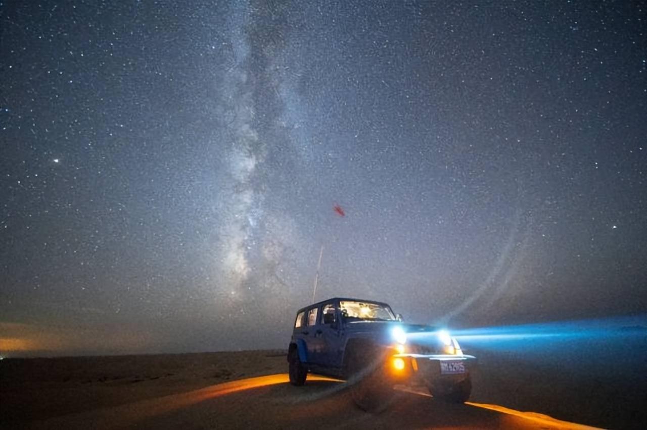因为远离城市的光污染,沙漠里的星空才能真的像书本里写到的那样“数也数不清”,躺下仰头望去,发觉整个天空都在围着自己旋转,头顶一条银色的拱桥从沙山的一头延伸到远方,千百年来的传奇故事,只有在这才能真切感受到。