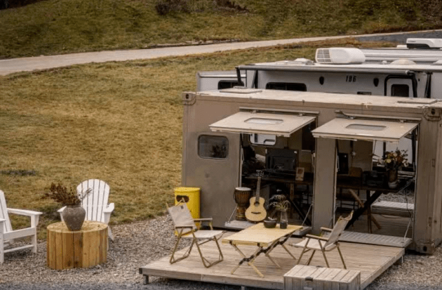 有人说这里是男人的天堂,简直就是房车露营的天花板,这里各种硬核元素都聚集在营地里面,比如动辄百万的房车、门头的哈雷!