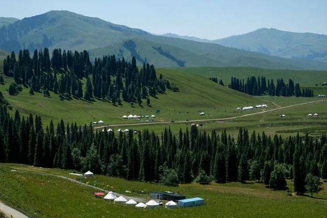 来这里还得提下,这一段路多数的草原都是牧民的私地,有围栏,所以要想和草原有亲密接触的地方有两个,一是阿克塔斯,一个是唐布拉,从乔尔玛进入景区会先到阿克塔斯再到唐布拉。这两处都是要过桥,然后有住宿有大片草原可供游玩。尼勒克天山黑蜂庄园生态酒店就在唐布拉草原上!(距离密蜜蜂小镇6KM)
