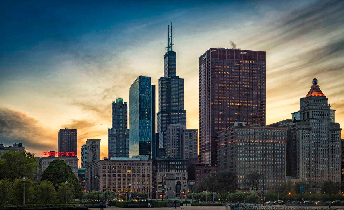 威利斯大厦是芝加哥最高的大楼,原名西尔斯大厦,由当时世界上最大的零售商西尔斯、罗巴克公司于1970年建成,建筑高108层,是美国第二高的建筑,仅次于纽约市的世贸中心一号楼。