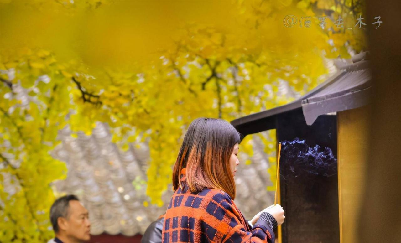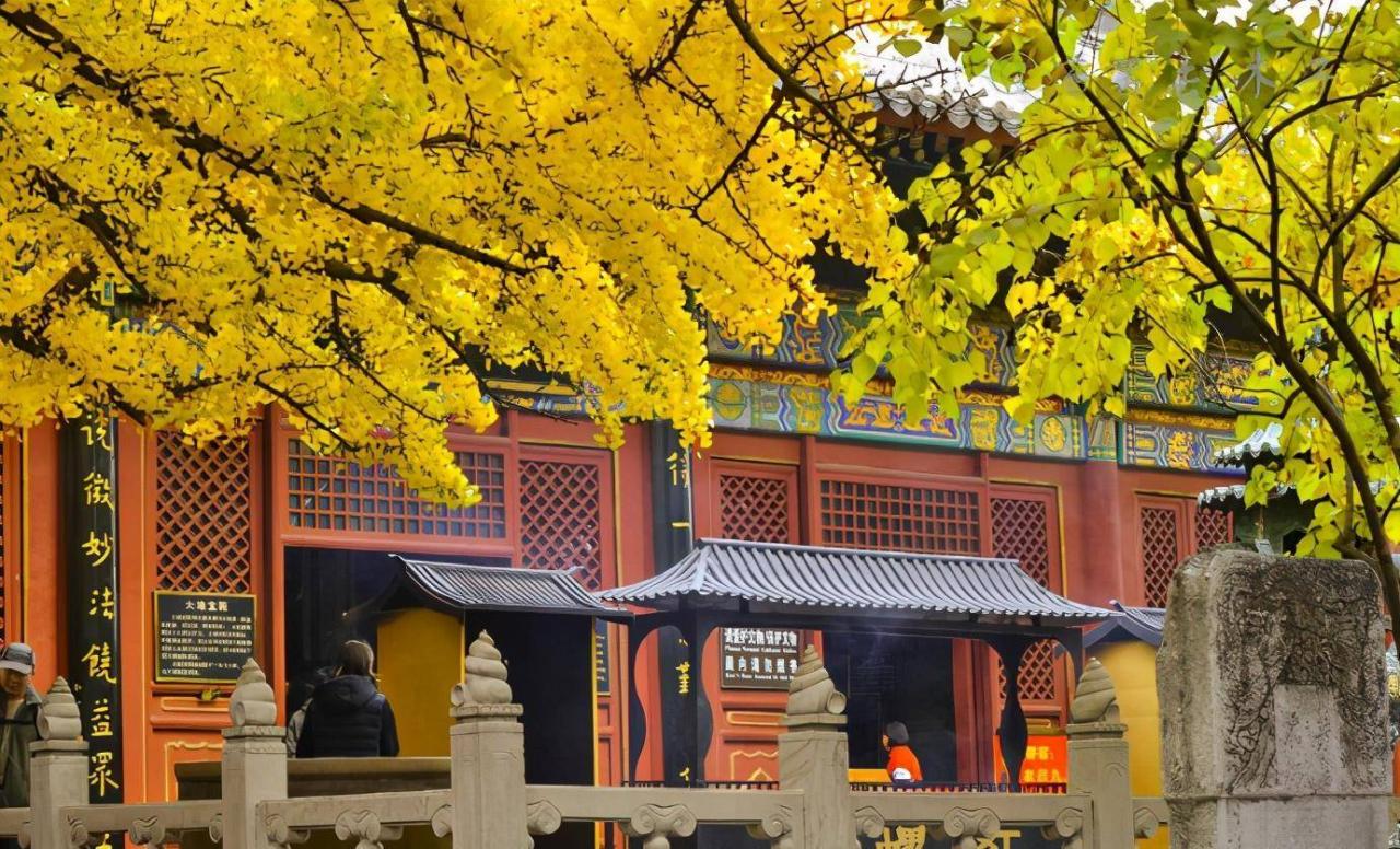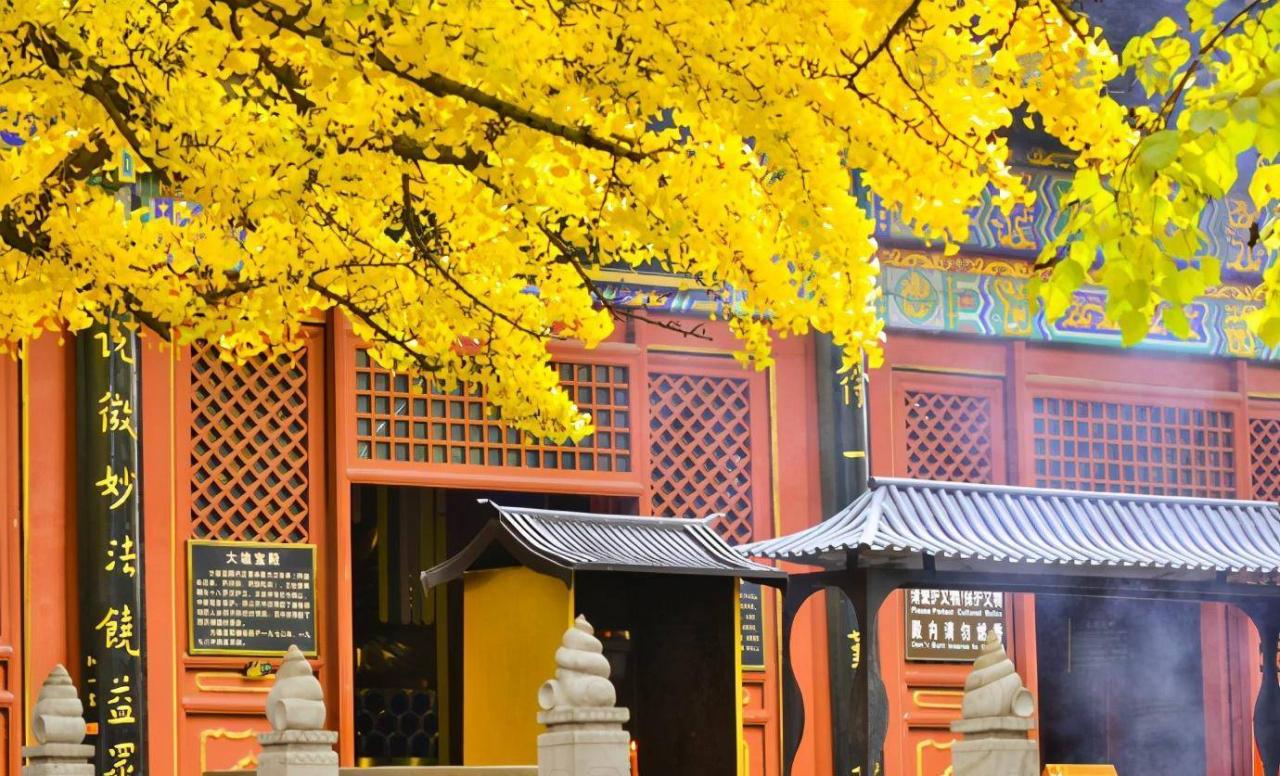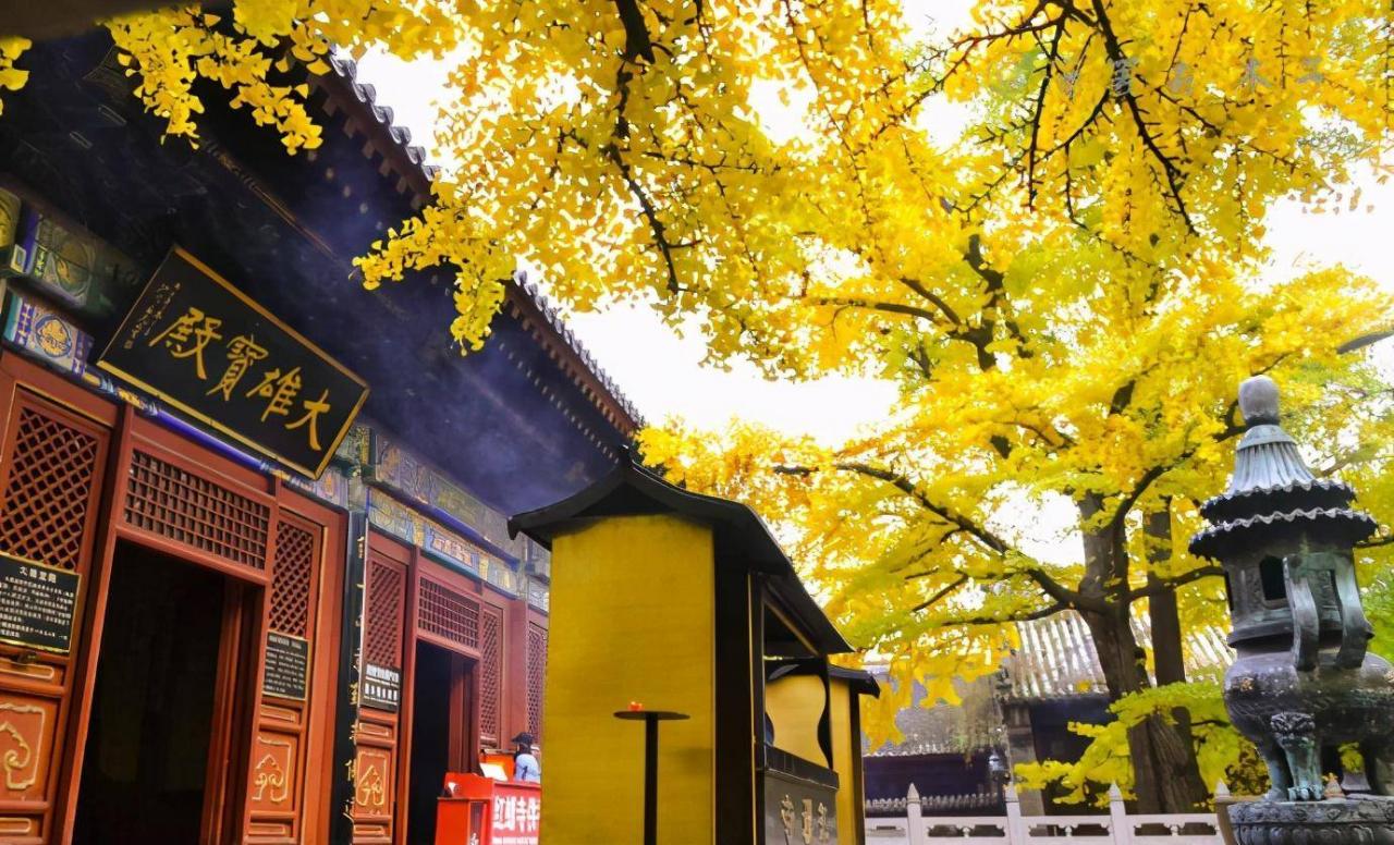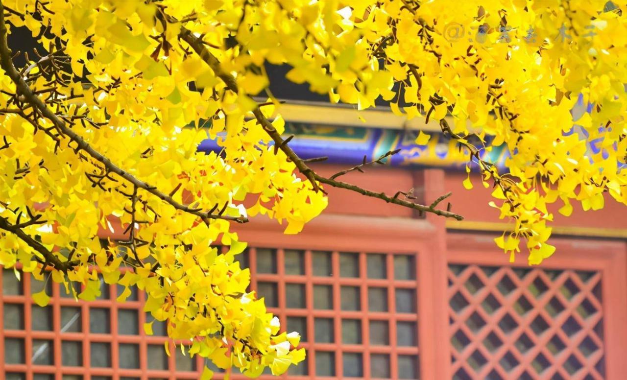 红螺寺景区浓郁的秋色里,两颗高大耀眼的千年雌雄银杏成为了山下古寺院区赏叶不容错过的一大亮点。