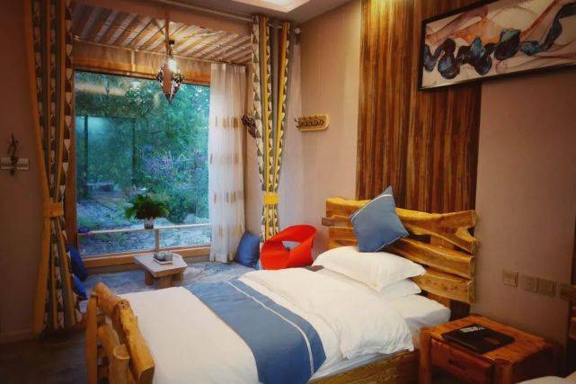 民宿由主人精心打造,院落干净整洁,绿树成荫鸟语花香,空气清新,房间风格各异,采用大量无漆原木打造,宽敞明亮落地飘窗上休闲小饮茶台,让客人回归本真。不忘初心。