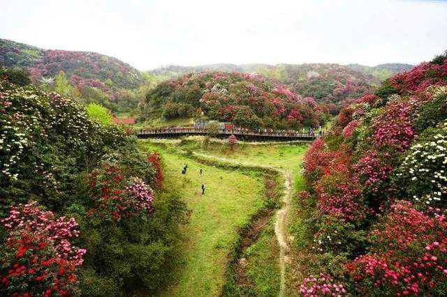 4月杜鹃花全面盛开声势浩大,美轮美奂呢,每当春回大地,百花盛开时,这片原始杜鹃林便以花的绰约、山的恢弘、海的气势,美得让你挪不开脚步