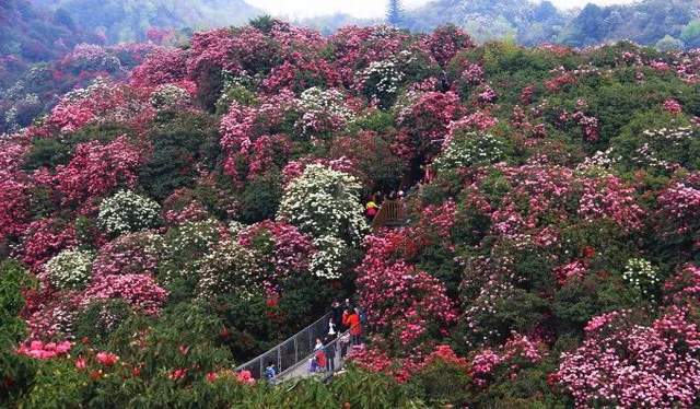 贵州独特的酸性土壤与海拔高度,非常适合杜鹃花生存,毕节就有一片天然的杜鹃花海,延绵50余公里、宽1-5公里,号称“百里杜鹃”。