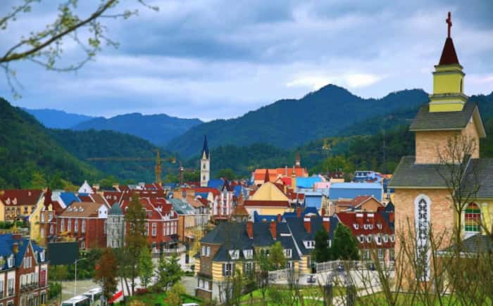 三、彭州白鹿小镇,整个小镇以法国风情建筑为主,是一座地地道道的北欧小镇,镇边上还有一座中国版的霍格沃兹,白鹿上书院,在这里拍照打卡,你就是下一个哈利波特。