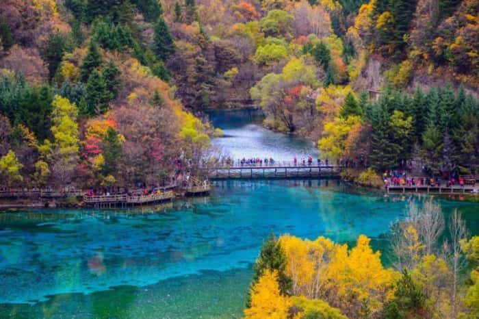 八、九寨沟,九寨归不来看水,她拥有世界上所有的自然色彩,是中国式的山水童话。