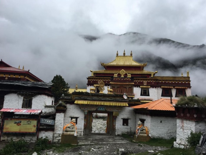现在映入我们眼帘的就是稻城亚丁游客中心,海拔3217米,我们可以在这里打卡留念。然后开启我们的第一段旅程,我们会坐观光车,一路前往扎灌崩,全程34公里,40分钟左右,一路上真的是九曲十八弯,沿着盘山公路蜿蜒而上,一路高山云雾缭绕。才能抵达观光车的终点站扎灌崩。