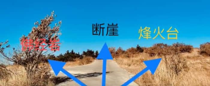 在我之前的攻略里介绍过,去排石景观一定要去以下的三个地方,分别是排石断崖、佛经崖和烽火台。导航搜索排石景观就可以直接到达,当你顺着水泥路往里走的时候,你会看到一棵树,沿着箭头的的方向直走,就是我们熟知的排石断崖。在这里提醒大家,断崖很高,拍照时一定要注意脚下,切勿离崖边很近,谨防踩空。