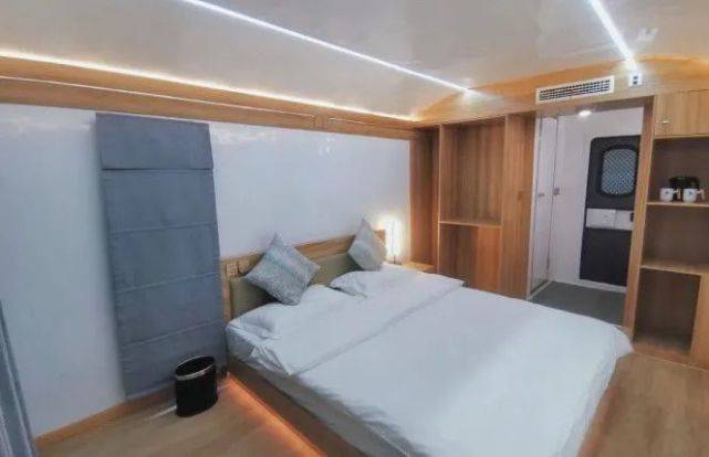 酒店面朝雪山,视野开阔 开窗便可欣赏日照金山,夜晚无数繁星在头顶闪耀星 简约的设计风格搭配北欧简约式家居,即使小面积下的方舱也能“麻雀虽小,五脏俱全” 整个房间配合使用空调系统、新风系统更加科技化和现代化晚上还有漫天的繁星。