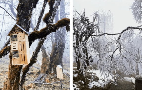位于王岗坪最高处的森林里,海拔2900米的牧云庄小木屋,特别是旁边的怪树林,就算天气不好,这里也能出片。
