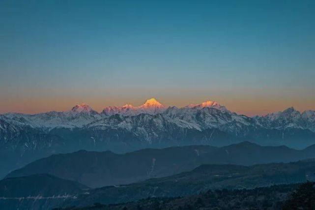 王岗坪与贡嘎雪山主峰直线距离30km,是距离贡嘎山最近的天然观景平台;王岗坪可以说是贡嘎雪山群的C位观景位,与主峰对视,呈现出等腰三角形的形态,这距离位置是其他景区所不能比的。