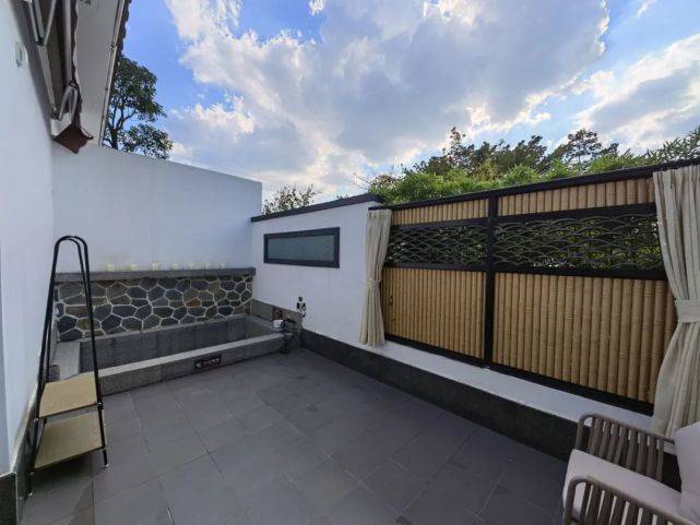 空中温泉在3楼,分了好几个池,房间正对流溪河,独立的温泉池在阳台,可以一边泡温泉一边看流溪河的风景!