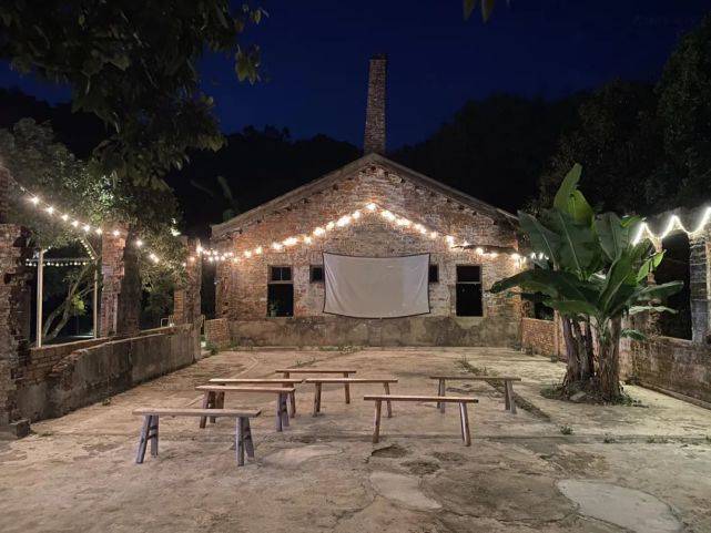这里依山而建,青砖绿瓦,老校舍改建,门口有小溪,夏天漫山遍野萤火虫,冬天可以泡温泉。有户外泳池,露天电影,还有木工体验课程,晚上也可以预定烤全羊。