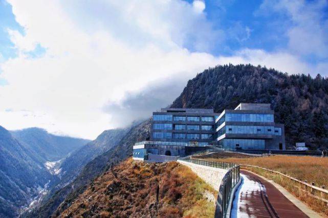 天空之城就是建在离四姑娘山景区19公里距离的日尔乡阿姆山经坪的悬崖上
