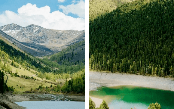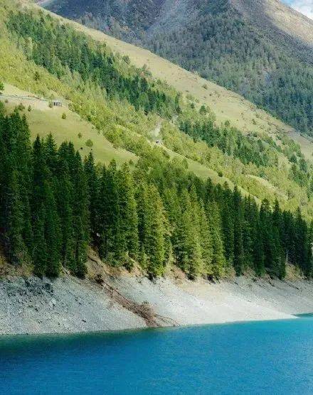 沿着栈道走向萨尔足错的源头,一道清澈的小溪从远山欢腾的奔流下来,穿过山岗,穿过树林,穿过一片片的格桑花,汇入碧绿的湖水,其实情人海最值得一提的是,就是这个小众湖泊。