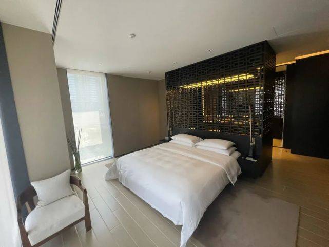 进到房间后,极具古典的酒店入口和现代化房间形成鲜明对比,房间宽敞而舒适;偏新中式的设计,墙体有厚重的石头感,让人觉得酒店更多有文化底蕴。