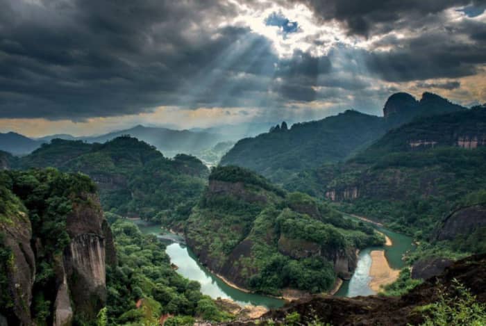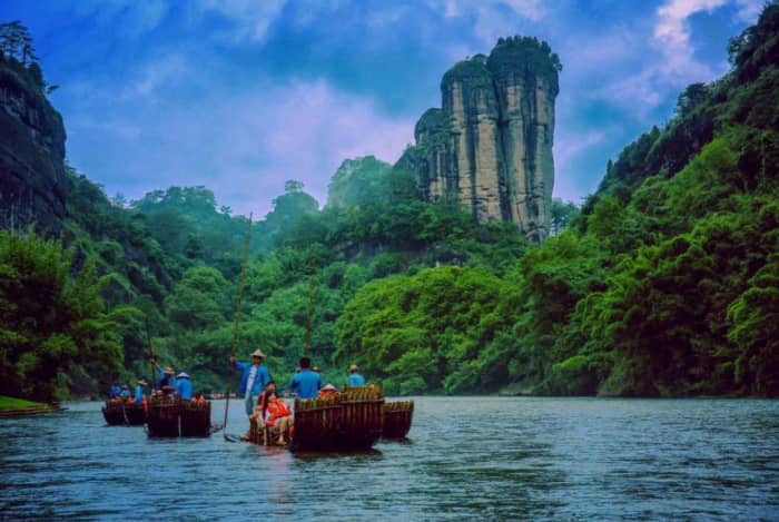 作为世界文化和自然的双重遗产,他到底有多厉害呢?在最美的溪流上做人力竹筏,沿着弯弯曲曲的九曲溪,像是驶入一幅山水画里,看似普通的远山近石,也可以被撑船师傅讲出各种段子。