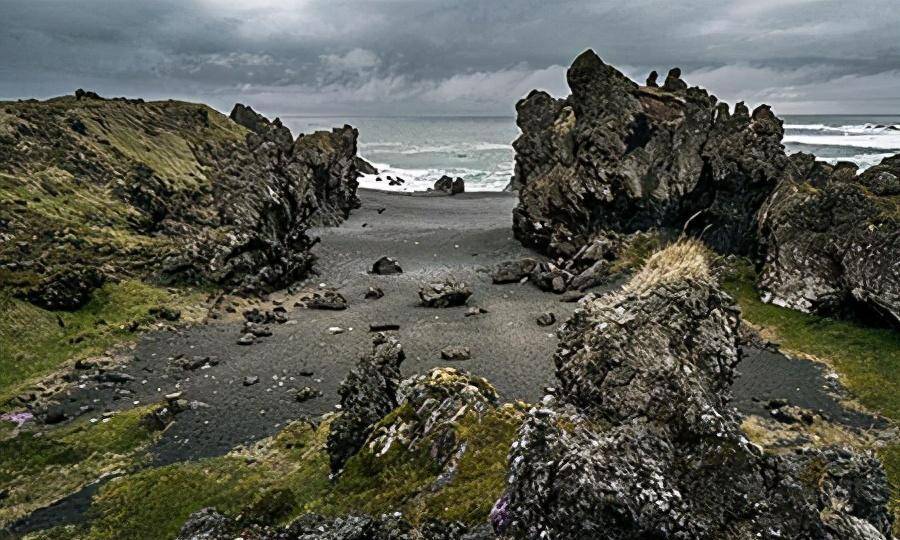 在大名鼎鼎的斯奈山半岛(Snæfellsnes)上,也有一处黑沙滩,名为Djúpalónssandur。这里曾经是斯奈山最多产的渔村之一,但现在变成了黑茫茫一片的沙滩。这个沙滩没有钻石黑沙滩上明亮晶莹的冰块,吸引人们眼球的,是4块巨大的“举石”。这些石头黑亮光滑,重量依次为23,54,100和154公斤,被以前居住在这里的人用来衡量力气。举起154公斤的人,有权利在此海滩上钓鱼。若举不起54公斤的石头,则丧失在渔船上工作的资格。这古老的比赛方式,至今仍受冰岛男人欢迎。
