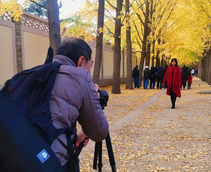 活跃的“照相馆”。早年,人们为留下一影得跑照相馆。手机的普及,照相馆几近停业,而银杏大道的“流动照相馆”应运而生。