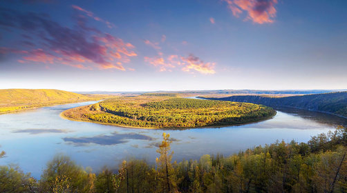 九曲十八湾是一片保存较好的原生态湿地景区。春天湿地被郁郁葱葱的绿草所覆盖,秀丽清新的小野花点缀着草原,河水从中流淌,犹如一条洁白的色带,轻舞飞扬。之后穿越大兴安岭森林公路,前往乌苏里浅滩,乌苏里浅滩紧挨着中俄界河黑龙江,坐标北纬53°33′43″,是我国的地理最北点,来到这里才算是真正“找到北。抵达龙江第一湾,徒步998级台阶登上龙江第一湾观景台可以俯瞰中俄界河黑龙江蜿蜒曲折,形成一个巨大的弯道。