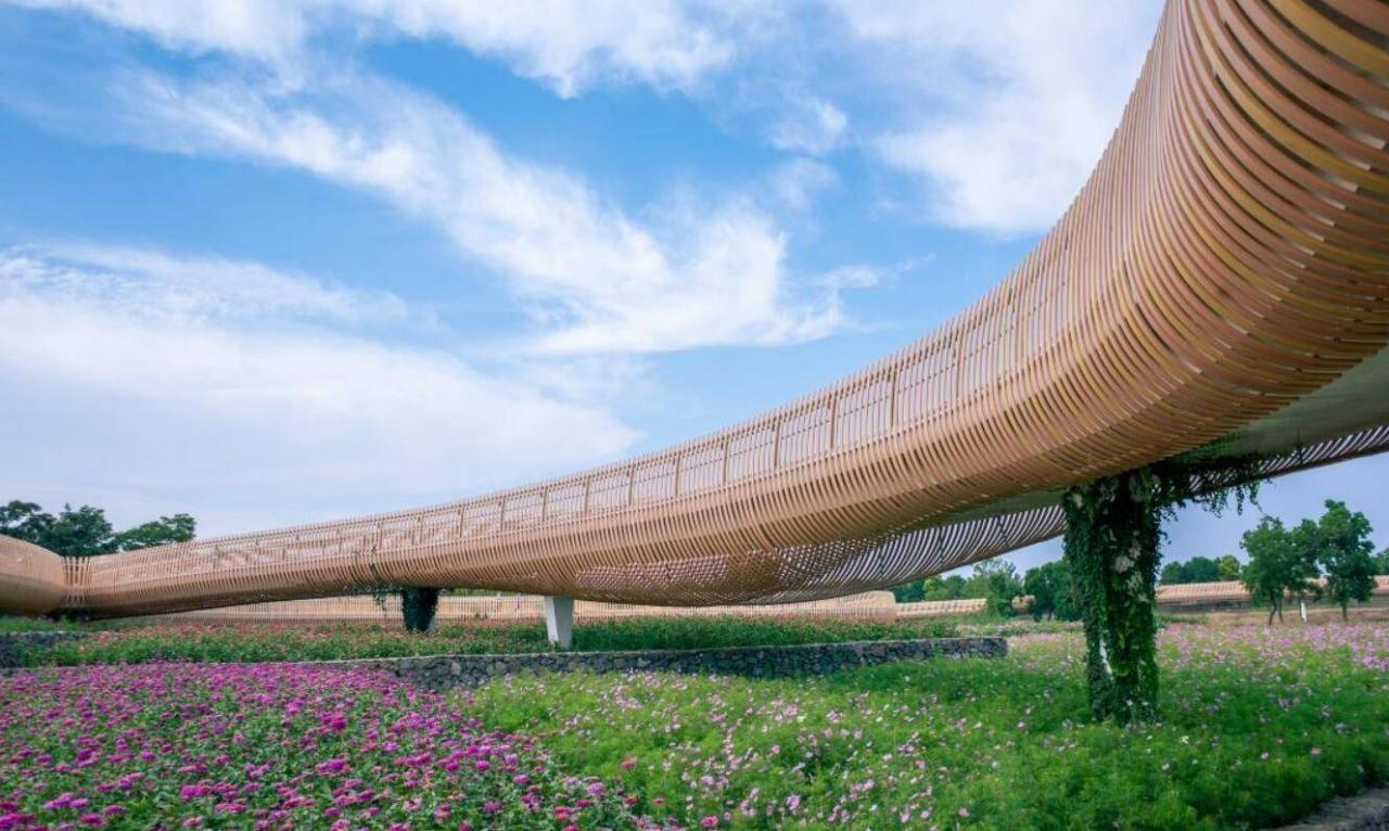 微风拂过,花海中满是甜蜜的花香,心旷神怡,站在彩虹桥上,一眼望去,层层叠叠色彩斑斓,令人陶醉。