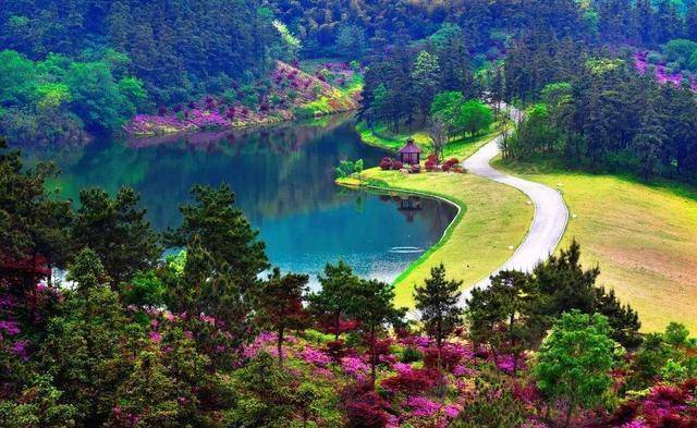 在银杏湖景区内,最标志性的建筑就是中国龙·中国梦,高约30米左右。龙是吉祥的象征,代表的是中国五千年文化的传承,寓意非常好。在银杏湖景区,还有着一片杜鹃花海,有多达800多万株杜鹃花。当花季来临,漫山遍野都是杜鹃花,极具视野震撼,非常漂亮。