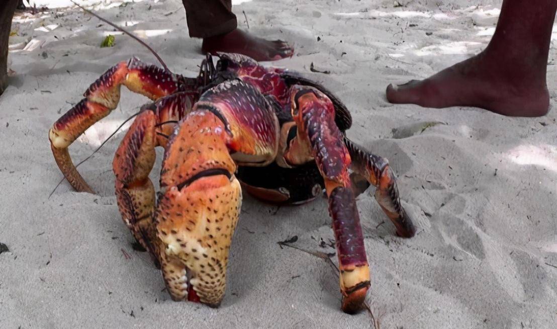 因为这个游客在沙滩游玩的时候看到一只非常巨大的螃蟹想着伸手去抓,但是却被一个当地人给阻止了,这个男子想抓的螃蟹是叫椰子蟹,它是专门以椰子为食物,它得体型非常大,但是在印尼却是不可以随便抓,因为它是属于保护动物。
